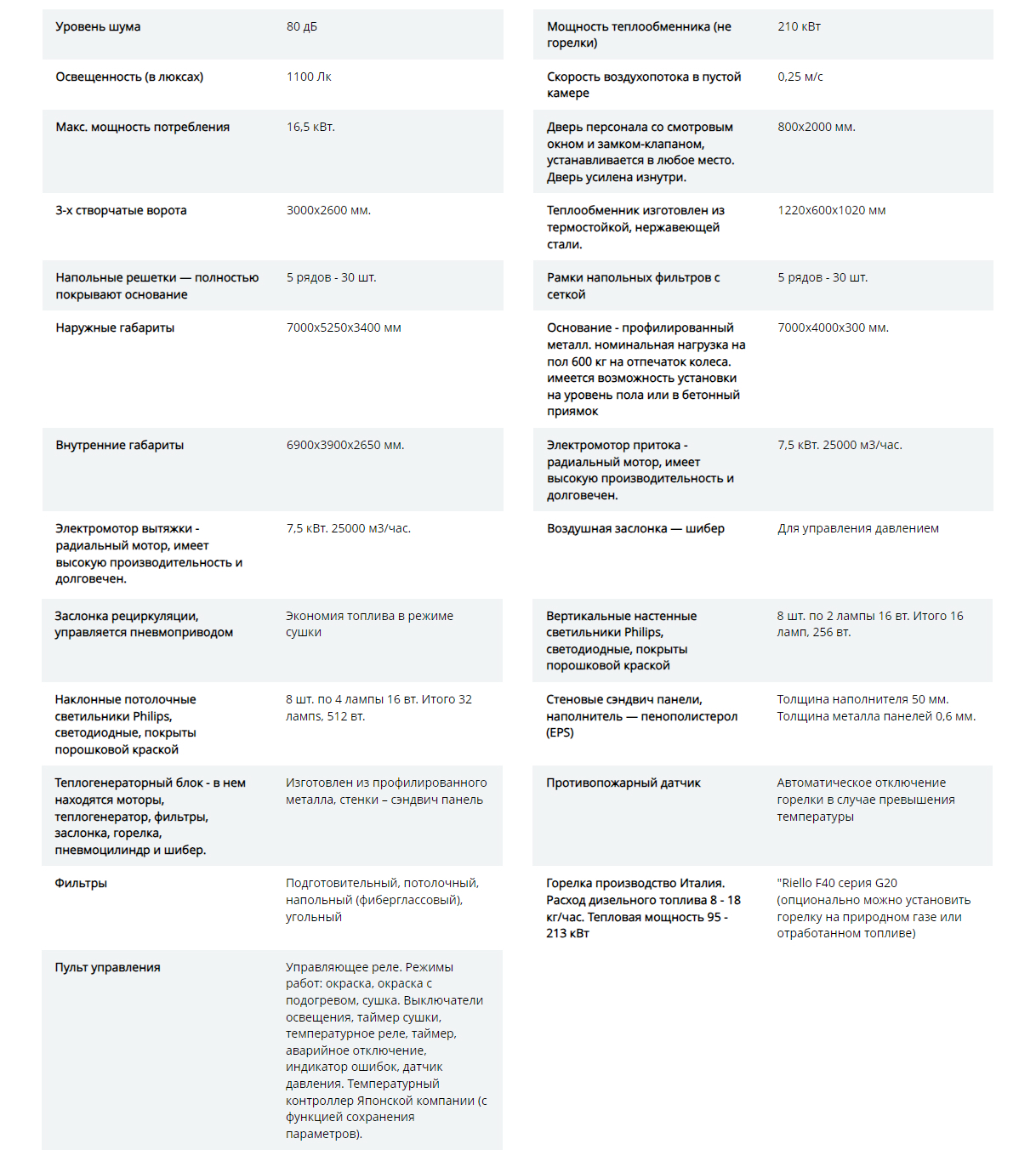• Нагрев воздуха в покрасочной камере осуществляется итальянской дизельной горелкой Riello.