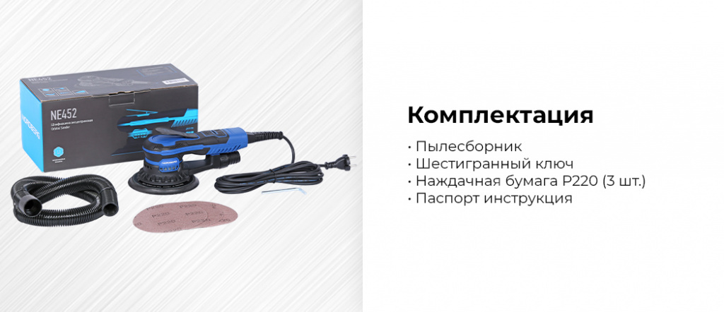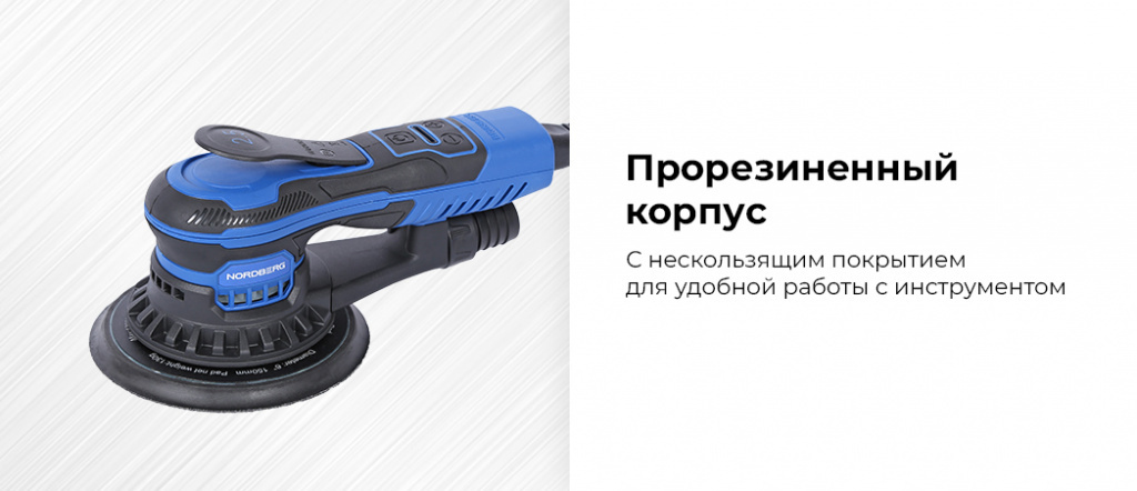 Эксцентриковая шлифмашина NORDBERG NE452 – универсальный инструмент для выполнения большого спектра работ в профессиональном и домашнем использовании.
