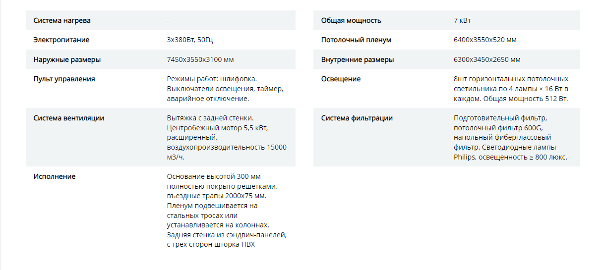 Зоны подготовки автомобилей имеют вытяжной блок с фильтрами очистки воздуха, пленум с осветителями и ПВХ шторы по периметру зоны.