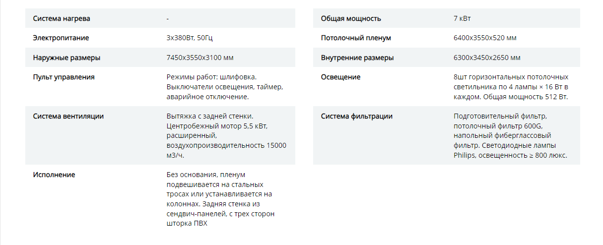 Зоны подготовки автомобилей имеют вытяжной блок с фильтрами очистки воздуха, пленум с осветителями и ПВХ шторы по периметру зоны.