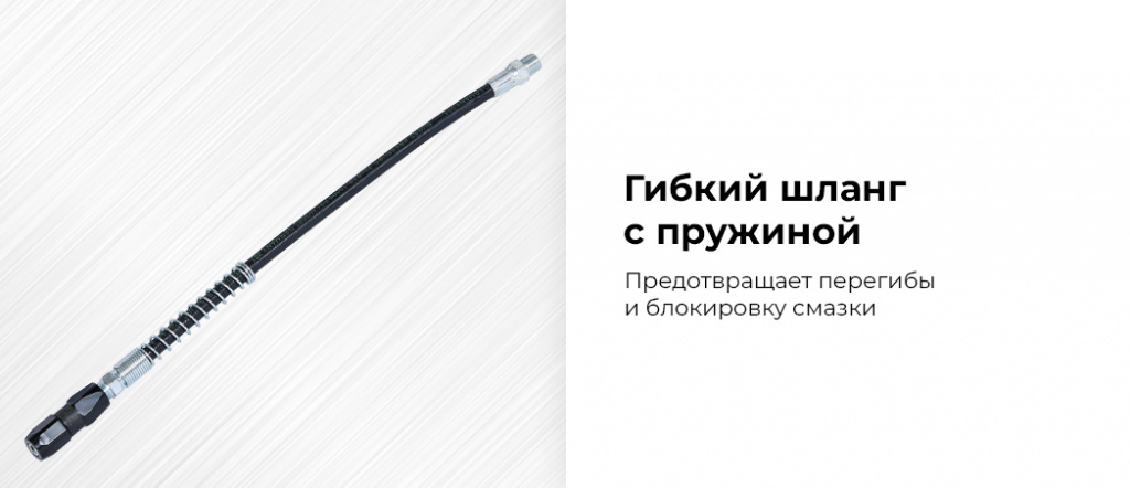 • Гибкий шланг подачи смазки снабжен пружиной, предотвращающей перегибы шланга и блокировку смазки