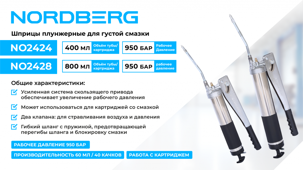 Использование плунжерного шприца NORDBERG NO2428 повысит качество сервисных работ при техническом обслуживании узлов и агрегатов автомобилей.