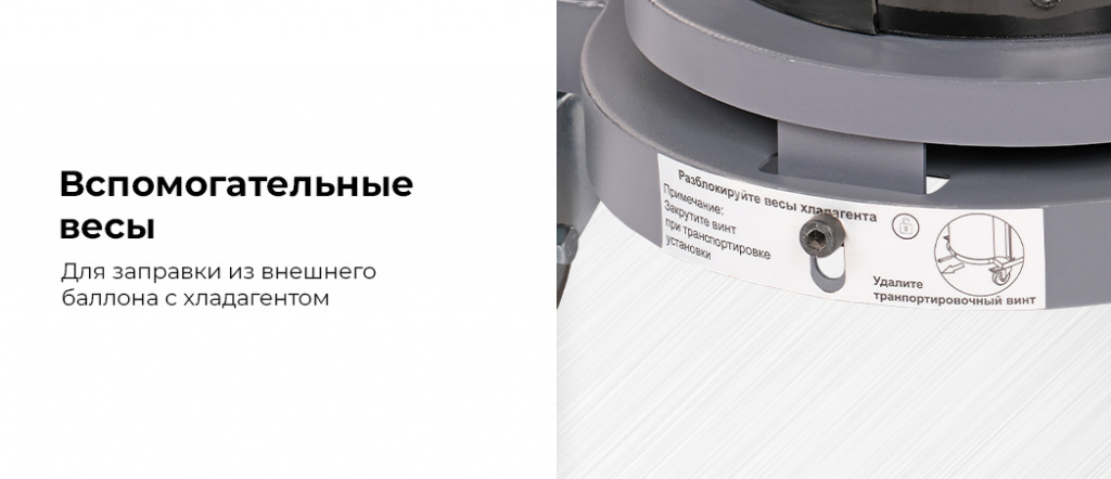 • Электронные весы с погрешностью ±10 г для точного контроля массы заправляемого хладагента и масла;